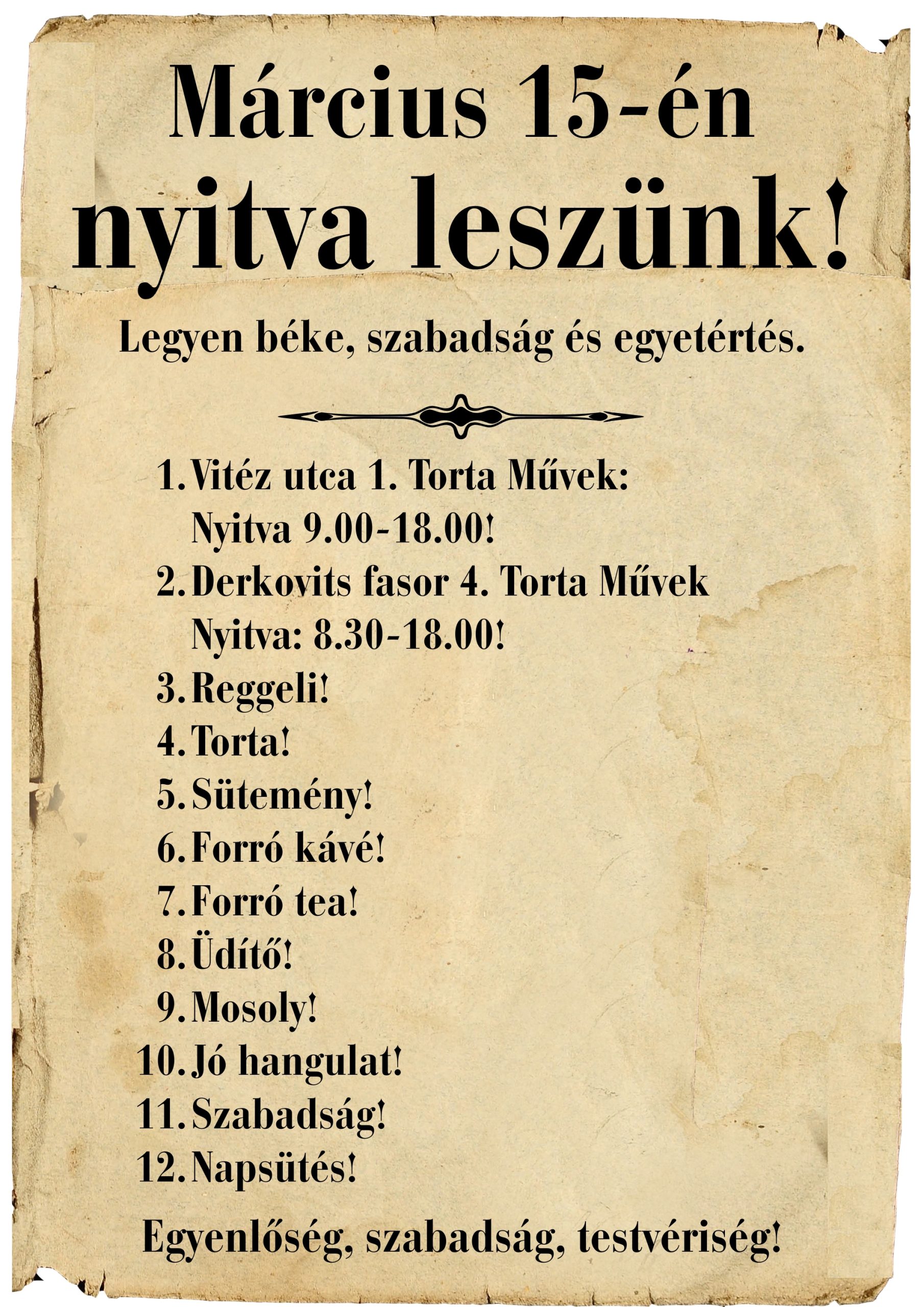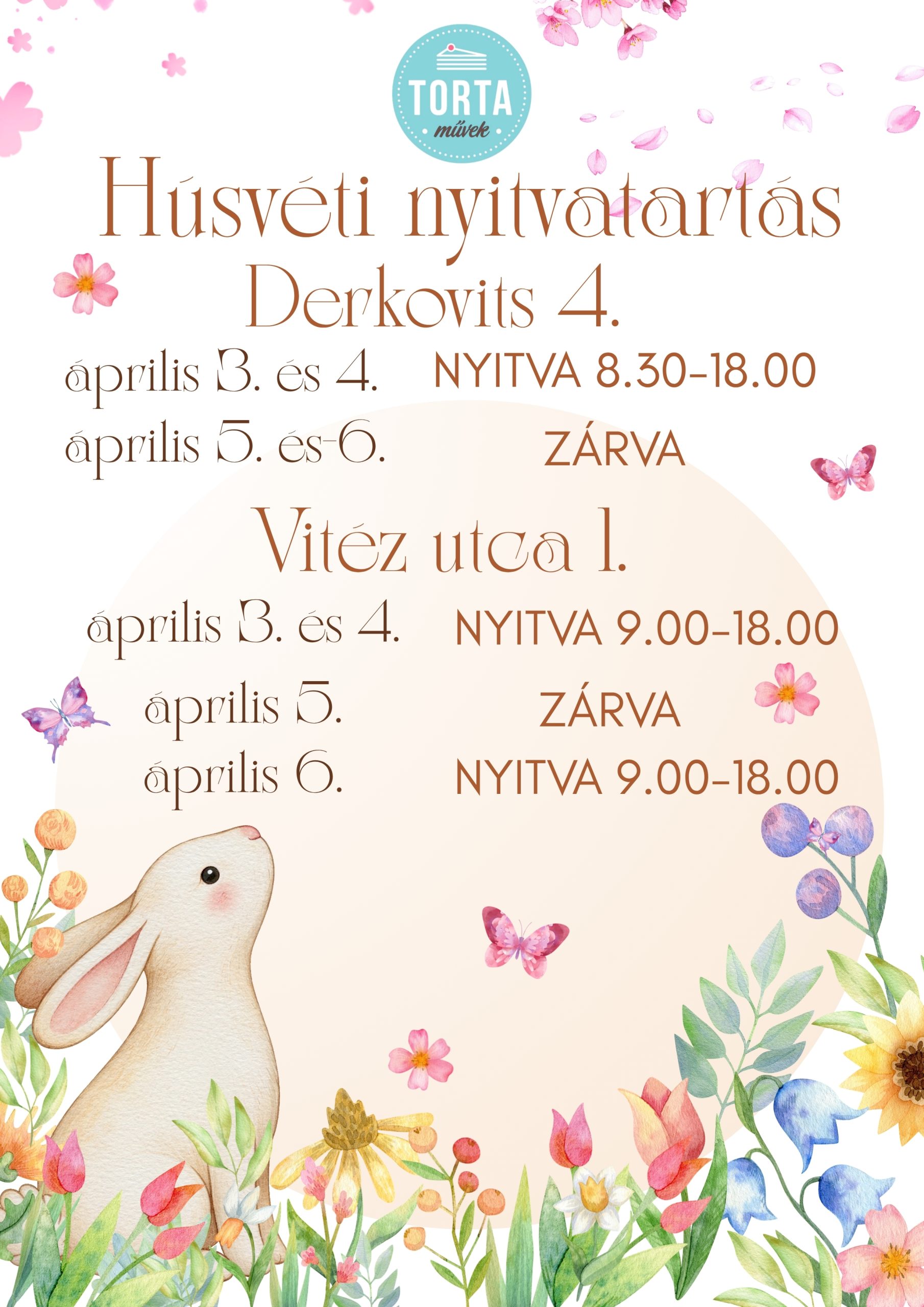 Kalácsra, aprósüteményekre, pitékre és tortákra is várjuk a rendeléseket: https://tortamuvek.hu/termekkategoria/husvet/ Nyitvatartásunk pedig a következőképpen alakul az ünnepi hétvégén: Nagypénteken és szombaton mindkét üzeltünk nyitva tart, vasárnap mindkettő zárva, hétfőn pedig a Vitéz utcában várunk benneteket, a Derkovits viszont hétfőn is zárva lesz.